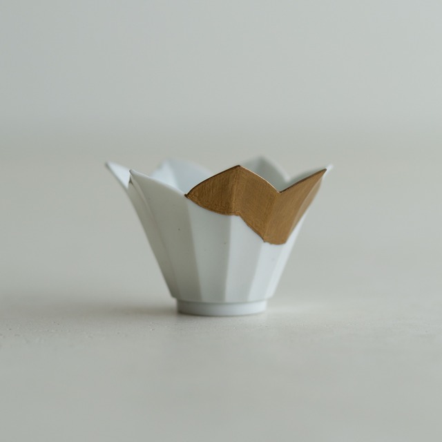 佐久間年春:初期伊万里 白磁沓盃(金繕い)