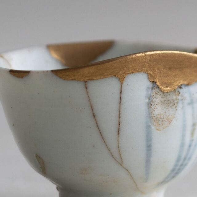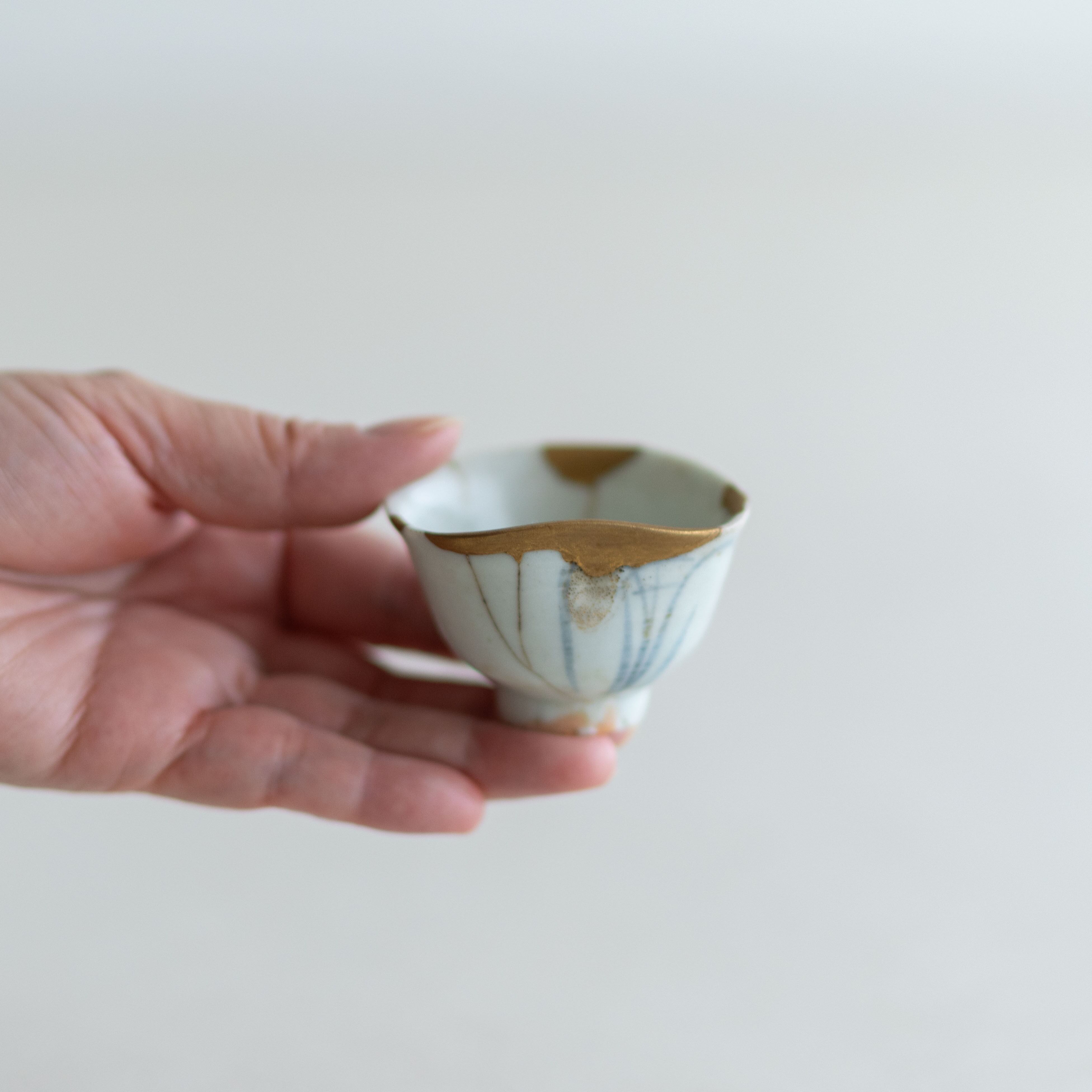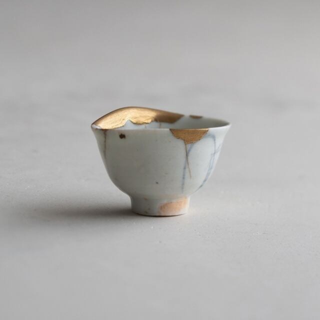佐久間年春:初期伊万里 草文(蘭文)沓盃(金繕い)