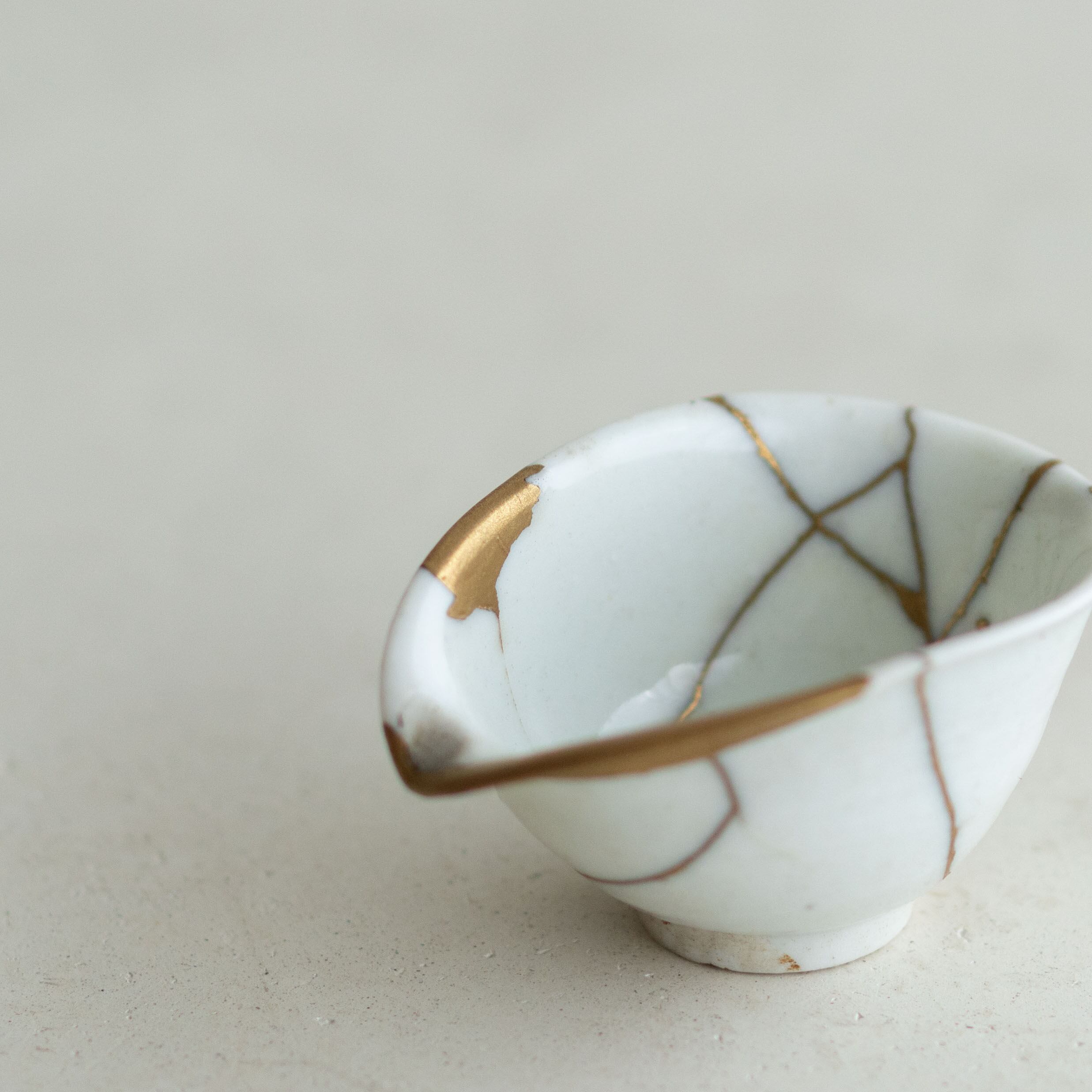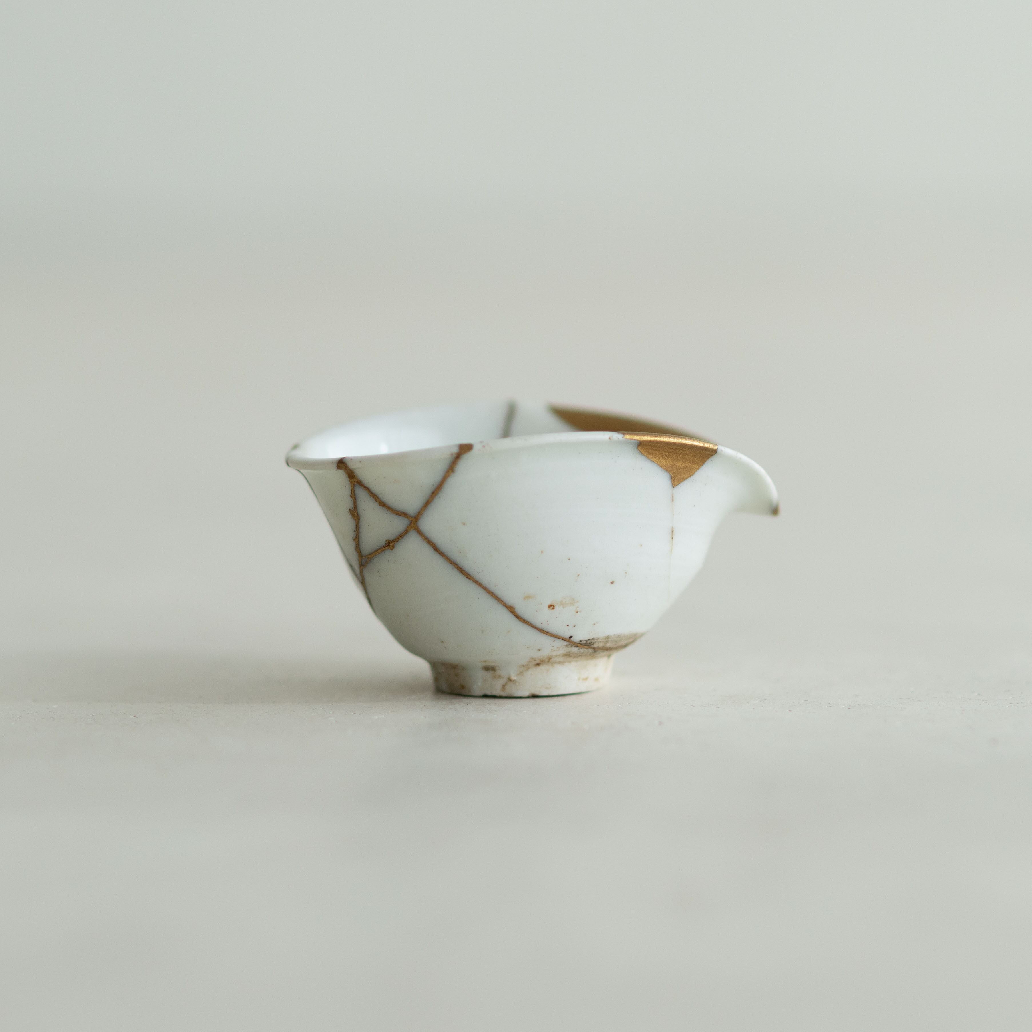 佐久間年春:初期伊万里 白磁沓盃(金繕い)